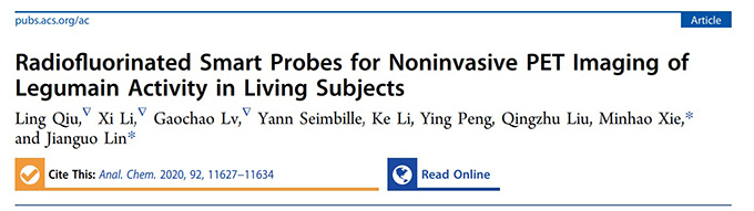 我所創(chuàng)新藥物研究中心一項以天冬酰胺內肽酶為靶向的放射性氟標記探針研究工作取得新進展,用自主研制出的兩種探針18F-2和18F-3對腫瘤中的天冬酰胺內肽酶活性進行正電子發(fā)射斷層掃描成像(PET),證實其所具有的良好的特異性識別能力與檢測信號增強功能。近日,這一成果發(fā)表在國際期刊一區(qū)雜志《Analytical Chemistry》2020年第92期上。