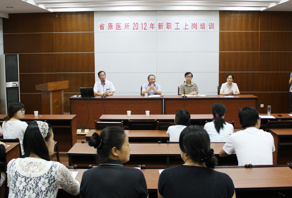 8月24日,當初秋的細雨送來了一絲微涼,當熟悉的所歌再次喚醒了記憶,一年一度的新職工崗前培訓在所階梯教室拉開了帷幕。我所32名新職工參加了為期一天的“省原醫所2012年新職工崗前培訓”。本次崗前培訓由組織人事科科長黃群主持,黨政工團及部分職能科室負責人對新職工進行培訓。