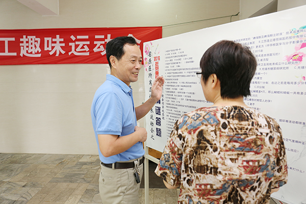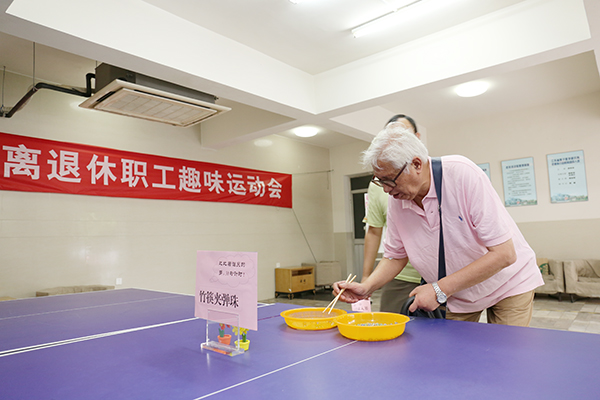 體檢結束后,老同志們來到離退休職工活動室,興致勃勃地參加離退休職工趣味運動會。本著適宜老年人身心健康、集娛樂與鍛煉為一體的原則,趣味運動會設置了猜謎答題、定點投球入簍、竹筷夾彈子三個運動項目,讓老同志們手、腦、腿并用,樂在其中。活動中歡聲笑語不斷,大家在切磋技藝的同時,享受到了快樂,找到了樂趣,展示出了老同志們積極向上的精神風貌。所黨委副書記、紀委書記秦秋萍來到運動會現場,對老同志們表示慰問,交流單位近期發展情況,鼓勵他們多多參加有益身心的文體活動,強身健體,延年益壽。賀重陽趣味運動會受到了老同志們的歡迎與好評,此項活動將作為每年的固定活動持續舉辦。(組織人事科 苗迪)