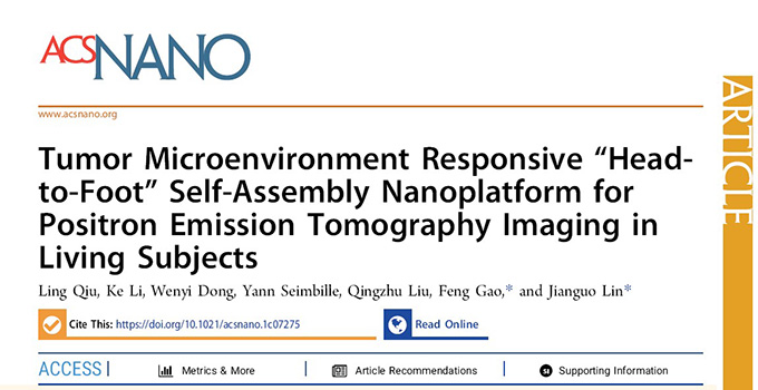 近日,我所創(chuàng)新藥物研究中心林建國研究員、邱玲研究員團(tuán)隊在中科院1區(qū)Top期刊《ACS Nano》(IF=15.881)上在線發(fā)表論文,報道了一種腫瘤微環(huán)境響應(yīng)激活型智能小分子PET探針,成功實現(xiàn)了探針放射性信號較長時間滯留在特定的靶組織中,達(dá)到了高特異性、高靈敏度的PET顯像效果,為發(fā)展新一代核素靶向診療分子探針提供了新的策略。